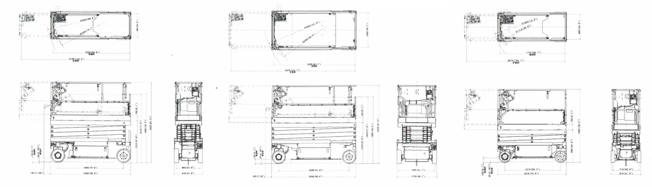 工作平台可水平延伸,NS/NL机型延伸900mm,WL机型延伸可达1270mm。除NS机型外其它机型护栏均可折叠。![]() |